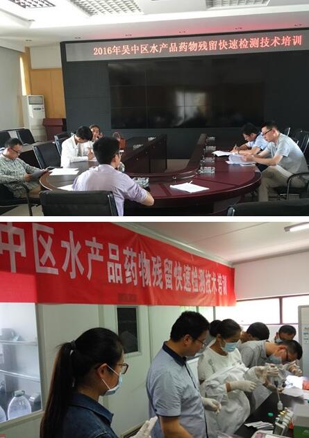此次培訓一是介紹了2015年吳中區水產品藥物殘留快速檢測工作在全省的績效考評結果及存在的問題;二是布置2016年的快速檢測任務及工作要求;三是發放實驗耗材。