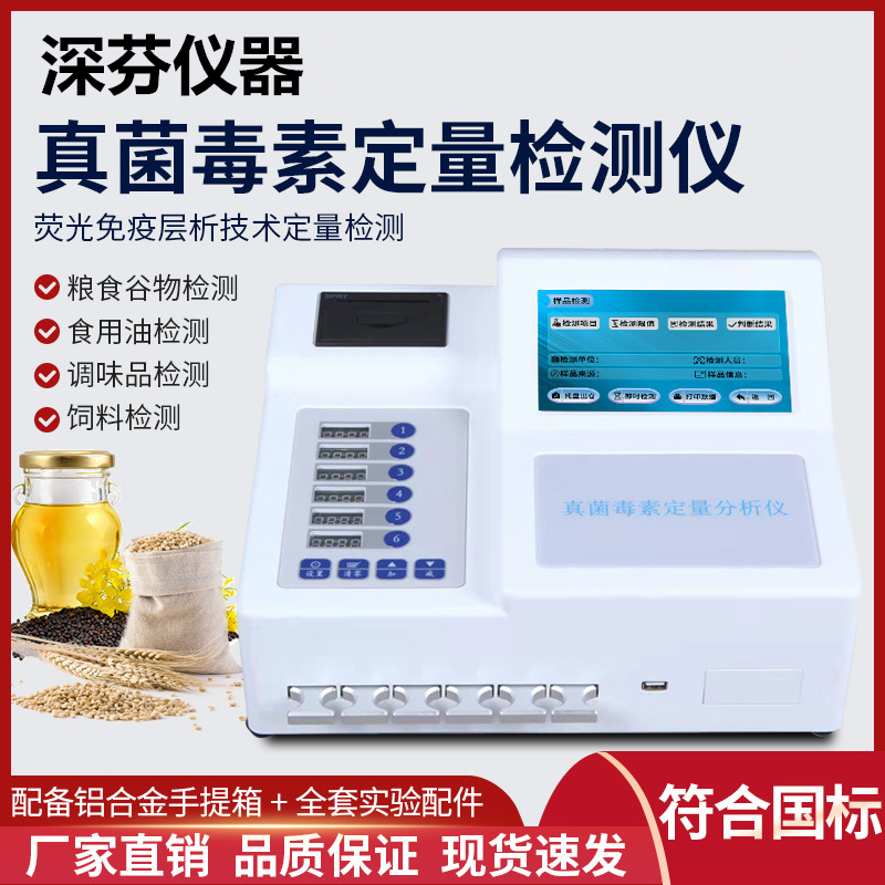 深芬儀器CSY-YG701真菌毒素快速檢測儀能夠快速定量檢測糧食、飼料、谷物、食用油、調味品等食品中T2毒素、嘔吐毒素、赭曲霉毒素、伏馬毒素、玉米赤霉烯酮,適用于糧油監測中心、糧油飼料生產加工、食品加工貿易、畜禽養殖戶自查、質監部門用于市場快速篩查等,能夠快速準確定量檢測出食品中的真菌毒素含量,杜絕真菌毒素超標食物流入市場。